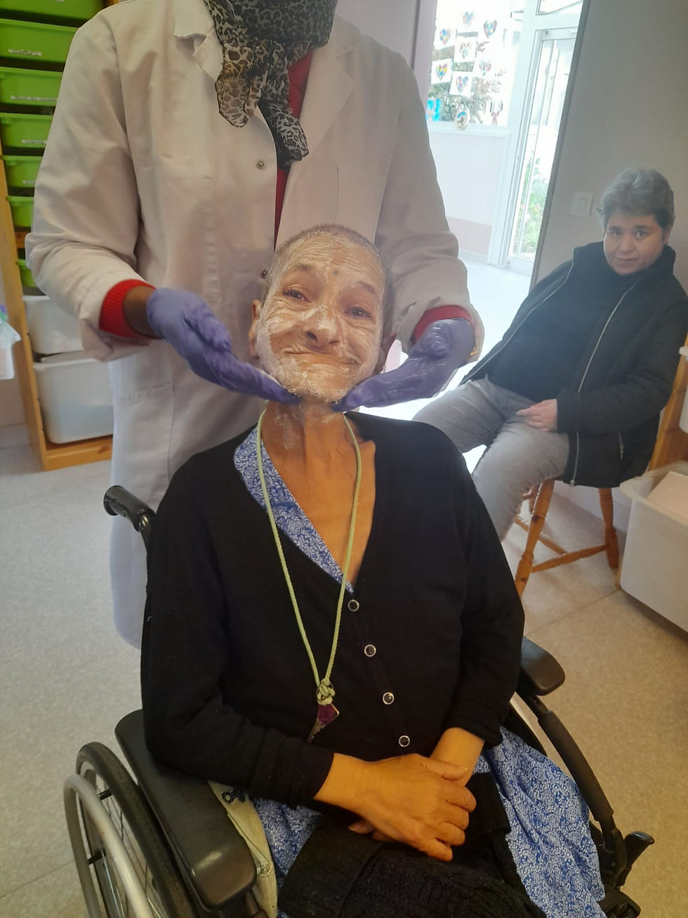 Comme on l'a déjà évoqué, au FAM, il y a plusieurs ateliers où les résidents/tes prennent un moment consacré à leur bien-être et au soin de leur apparence. Aujourd'hui, avec Lucienne, c'était soins du visage et manucure. Les résidentes ressortent avec une bonne mine et des ongles de toutes les couleurs 😁
