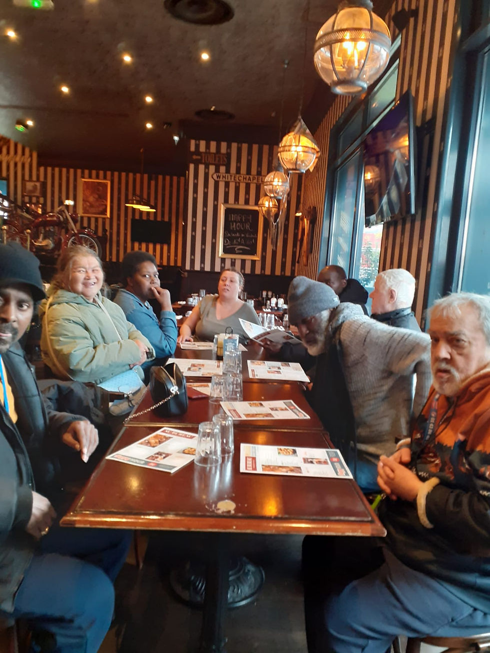 Si certains résidents sont plutôt casaniers et ont un peu de mal à envisager de grandes ballades en forêt, des visites au musée ou des après-midi au théâtre, rare sont ceux qui refusent toutefois le plaisir d'aller boire un verre ensemble, quelque part. Depuis quelques temps, "Le Bureau" est le bar à la mode chez les résidents du FAM. Qu'on choisisse de s'installer en grande tablée conviviale ou qu'on préfère le décor plus intimiste des petites tables rondes avec les beaux fauteuils, c'est une ambiance un peu classe qui plait beaucoup. Même Pierrette, Francette et Claude P., qui ne sortent pas beaucoup habituellement, semblent de cet avis !