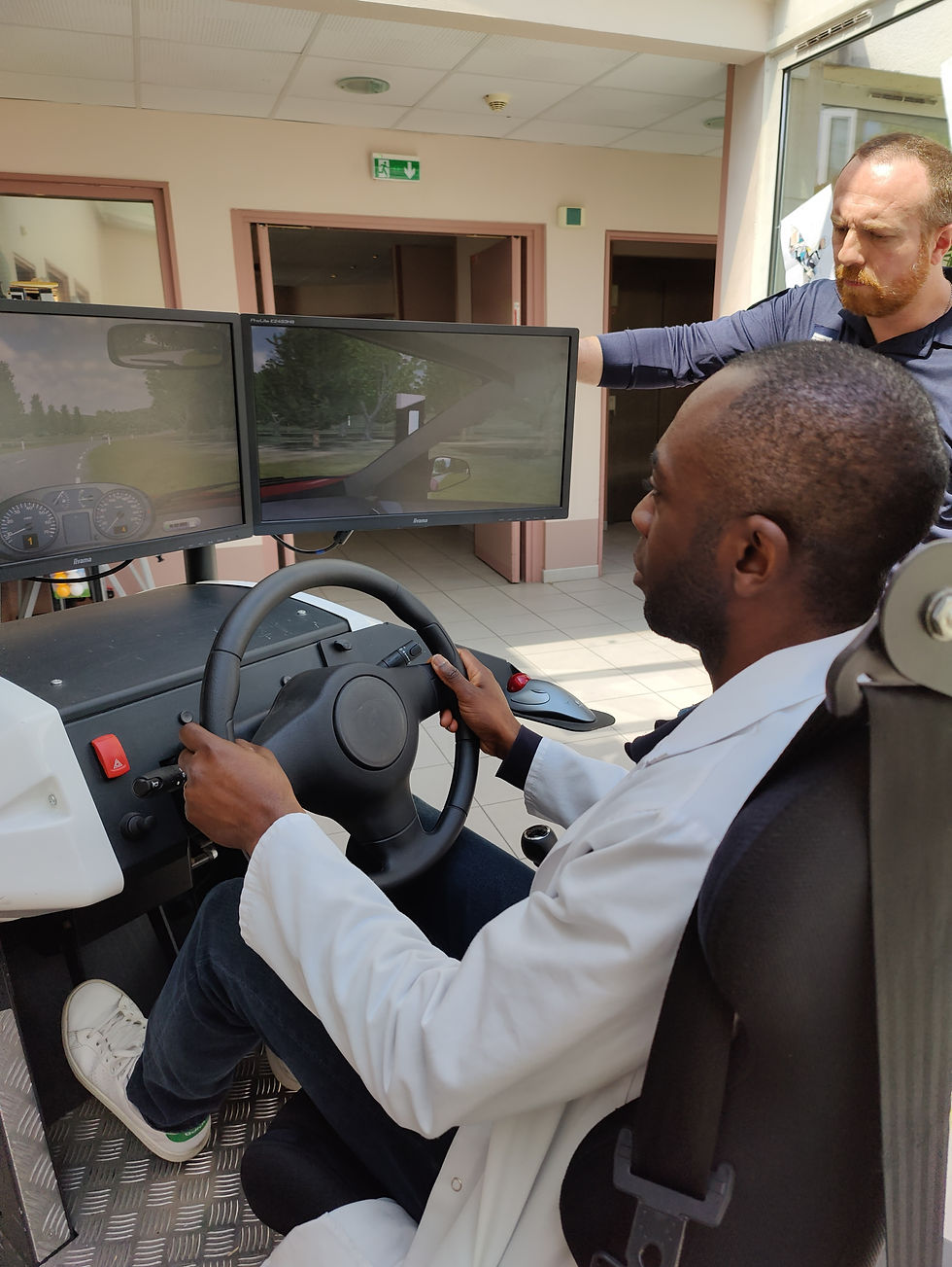 Pour autant, pour des raisons pratiques, le simulateur de conduite avait été installé devant la salle de réunion dans le large couloir face au Patio. Les résidents pouvaient donc aisément venir voir ce que nous faisions (et même se moquer de nos piètres prestations 😂).